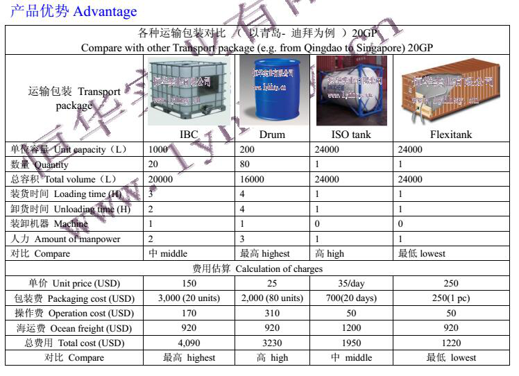 集裝箱液袋是一種新型的能夠儲(chǔ)存和運(yùn)輸各種非危險(xiǎn)液體貨物的軟體包裝容器。該容器主要采用多層結(jié)構(gòu),由外層 PP 編織布和內(nèi)層 PE 膜復(fù)合而成;其體積一般為 14-24 立方米,可一次儲(chǔ)運(yùn) 24000 公升液體;可放置于一個(gè) 20 英尺集裝箱內(nèi),也可置于拖車(chē)掛斗中,實(shí)行門(mén)到門(mén)運(yùn)輸,適合海、陸多種運(yùn)輸方式。相對(duì)于傳統(tǒng)的罐、桶等液體容器,可大量降低包裝、裝卸及物流成本。